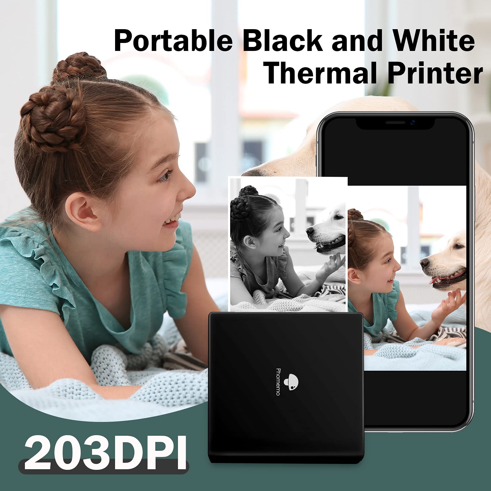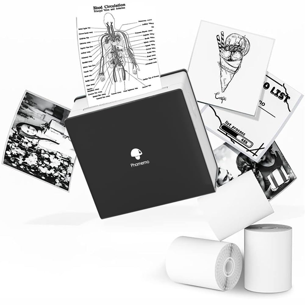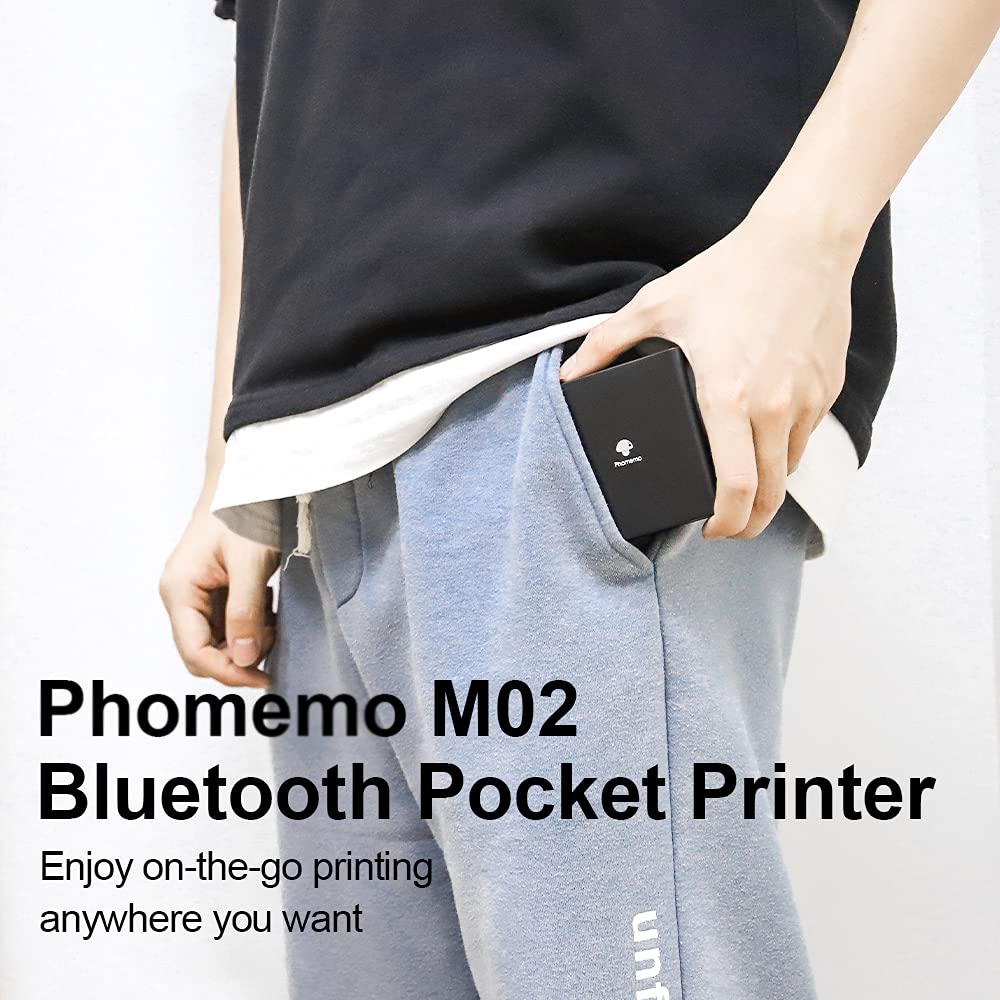 Phomemo Stampante portatile per foto M02 Set di 3 rotoli di carta inclusi - Stampante termica tascabile, piccola stampante Bluetooth compatibile, Android, iPhone, iPad, per bambini, nero