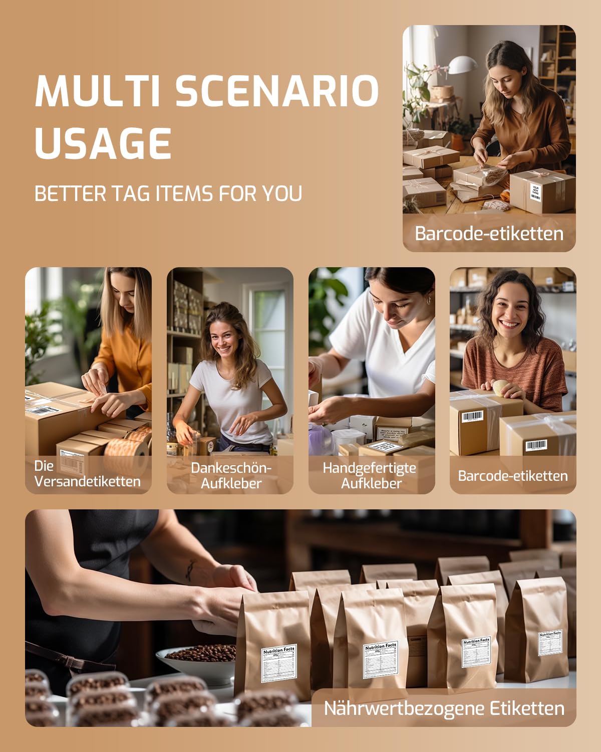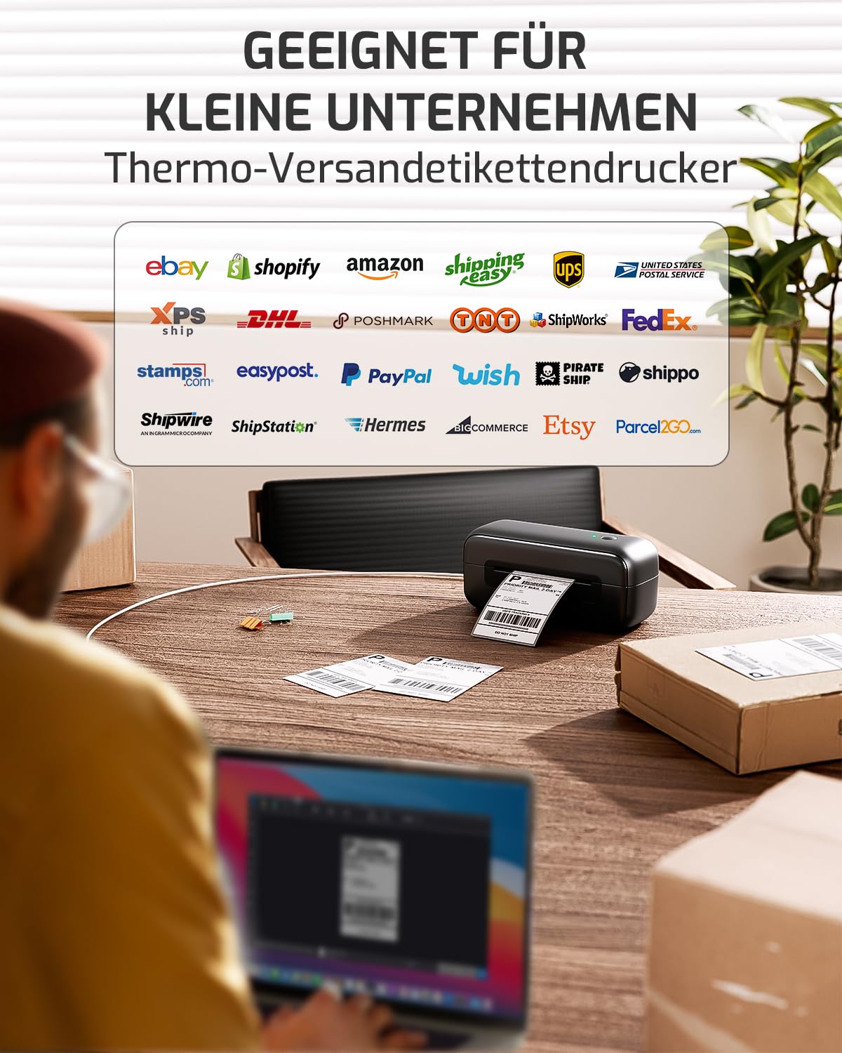 - Ampia Compatibilità:Phomemo Stampante per etichette postali è compatibile con tutte le principali piattaforme di spedizione e vendita,tra cui Amazon,eBay,Shopify,Etsy,FedEx,UPS e altro ancora.È utilizzata principalmente per stampare etichette di spedizione da 4''x6'',etichette di indirizzo,etichette di magazzino FBA Amazon,etichette con logo rotondo,etichette con codice a barre,etichette DHL,etichette di prezzo e altro ancora