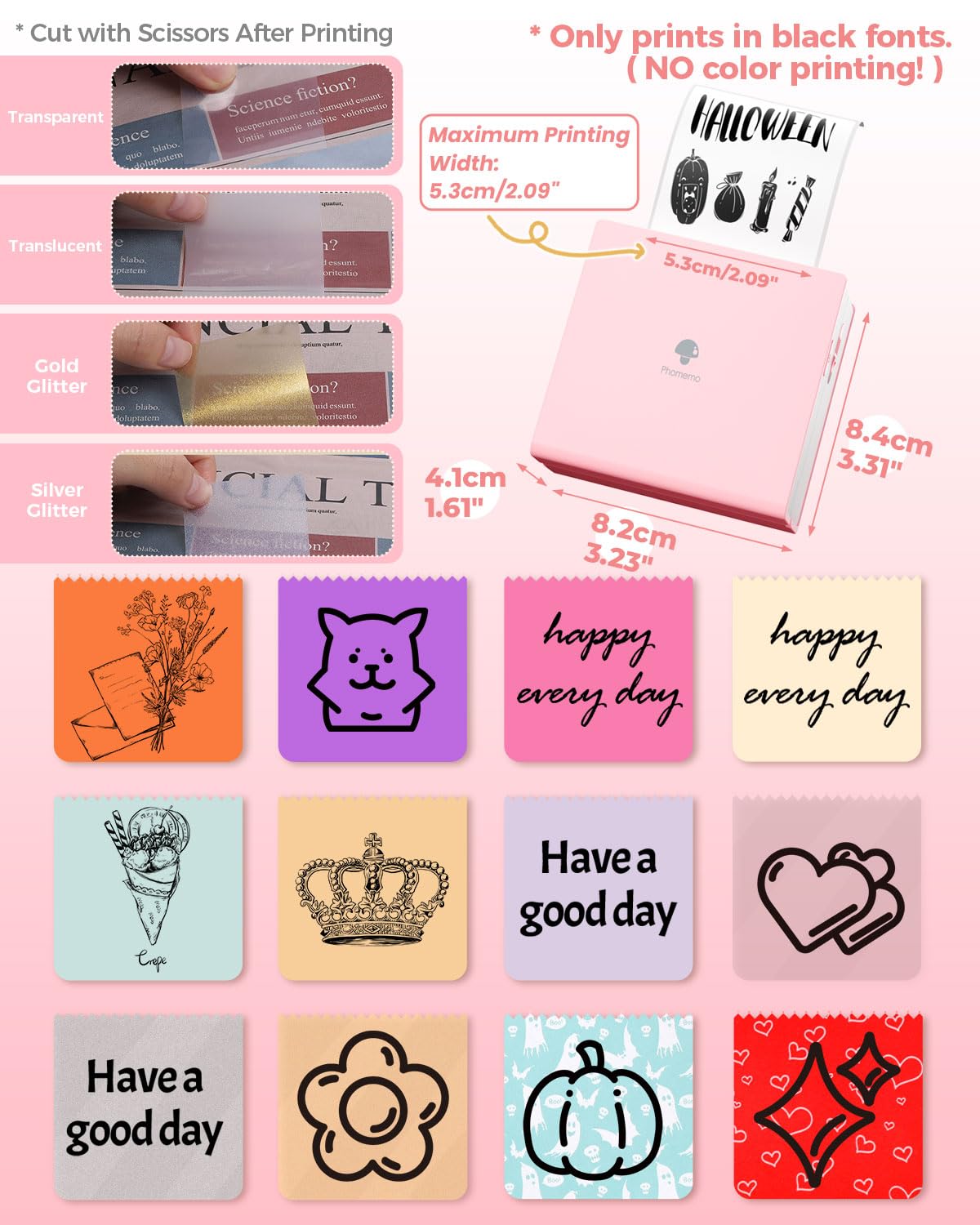 Phomemo Stampante termica M02 Mini stampante tascabile wireless Stampante per ricevute on-the-go 203 DPI per diario Regalo per bambini Rosa