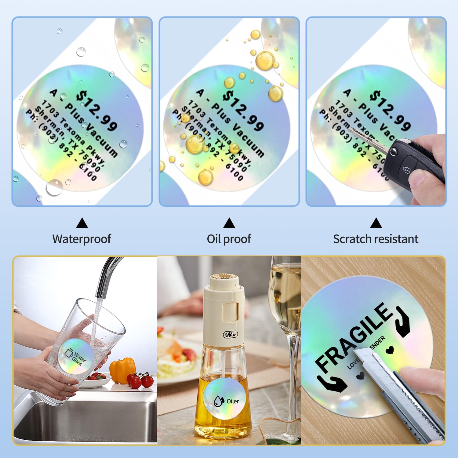 - Design für Leben und Geschäft: Wasserfest, ölbeständig und kratzfest. Erstellen Sie Klassifizierungs-, Lager-, Größenetiketten und Namensschilder im Leben, drucken Sie Produktpreise, QR-Codes, Barcode-Informationen und entwerfen Sie Ihre eigenen Firmenlogos