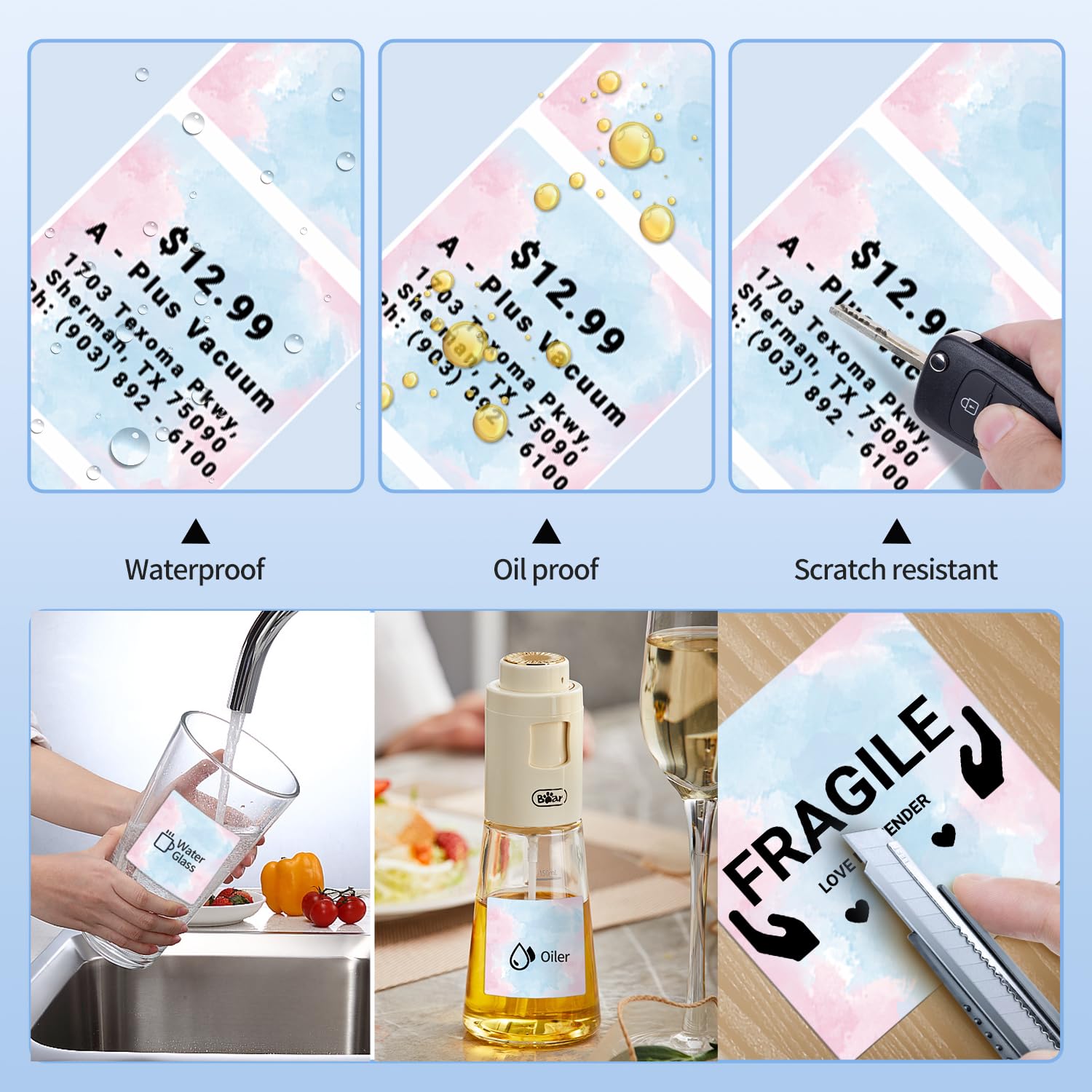 Phomemo Star Coloured Square Étiquettes thermiques autocollantes, 50 x 50 mm, 500 étiquettes/rouleau d'étiquettes thermiques carrées rose étoilé