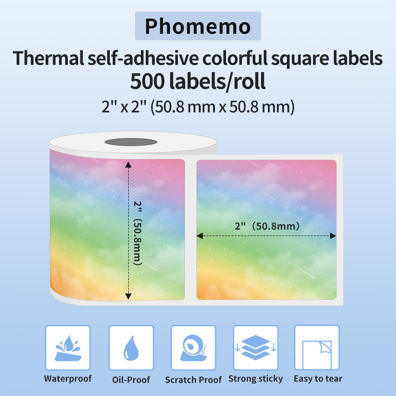 Phomemo Starry Sky kleurrijke vierkante etiketten, 50 x 50 mm, zelfklevende thermische etiketten, 500 etiketten/rol, sterrenhemel kleurrijke vierkante etiketten