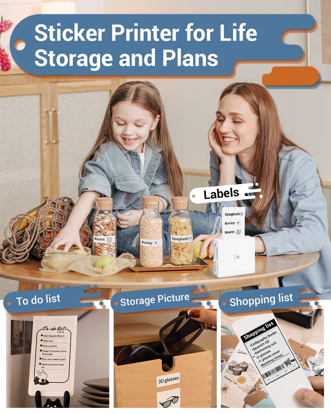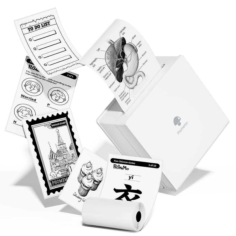 Phomemo Sticker Printer - M02 Mini Pocket Printer, 203dpi Thermal Instant Photo Printer, Small Bluetooth Wireless Picture Printer, Portable Phone Printer for Children, Gift, White