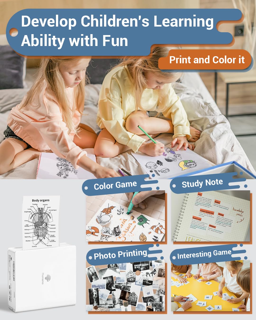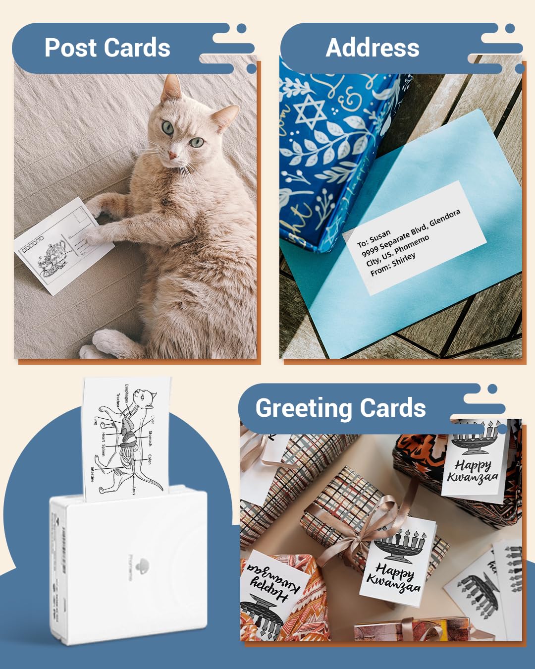- Applications: One click printing saves time and effort, users see that the information on the phone screen can be printed immediately, the applications offer a variety of fonts, filter effects and themes, make your black and white photo stylish. It's a fun printer, but not a camera.Phomemo M02 Pocket Printer can print Black and white images, cannot print colors