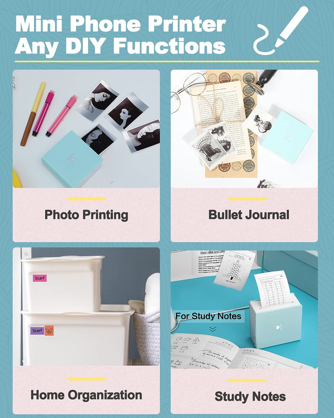 - ¡Ì Mulituse with M02 Pocket Printer- Pocket phone printer is good for printing black and white photos, text, receipts, memos. You can use it at home, school and office. For students, children, teachers, shopping lists, plan journal, work plans, study notes, ect. Also a gift for everyone