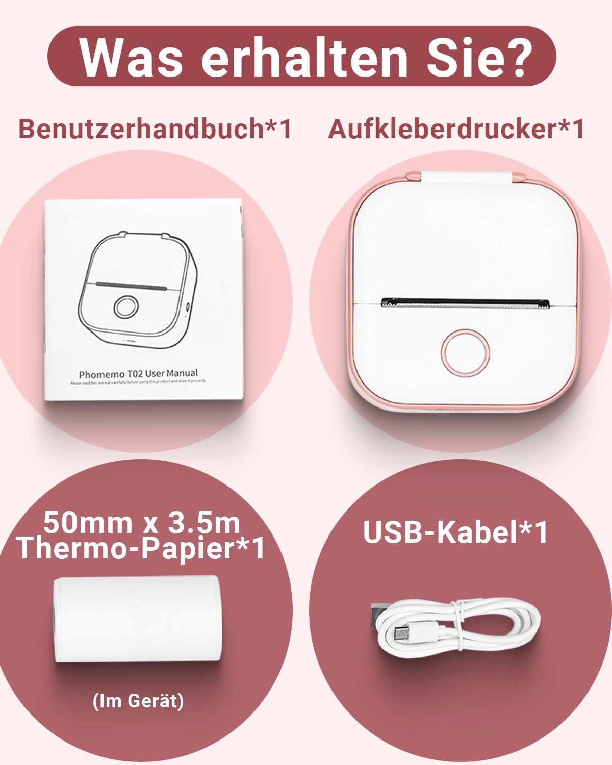 Phomemo T02 - Mini autocollant pour imprimante photo mobile - Imprimante thermique pour smartphone - 203 dpi - Imprimante Bluetooth - Pour organiseur, adolescent, ¨¦tudiant, enseignant