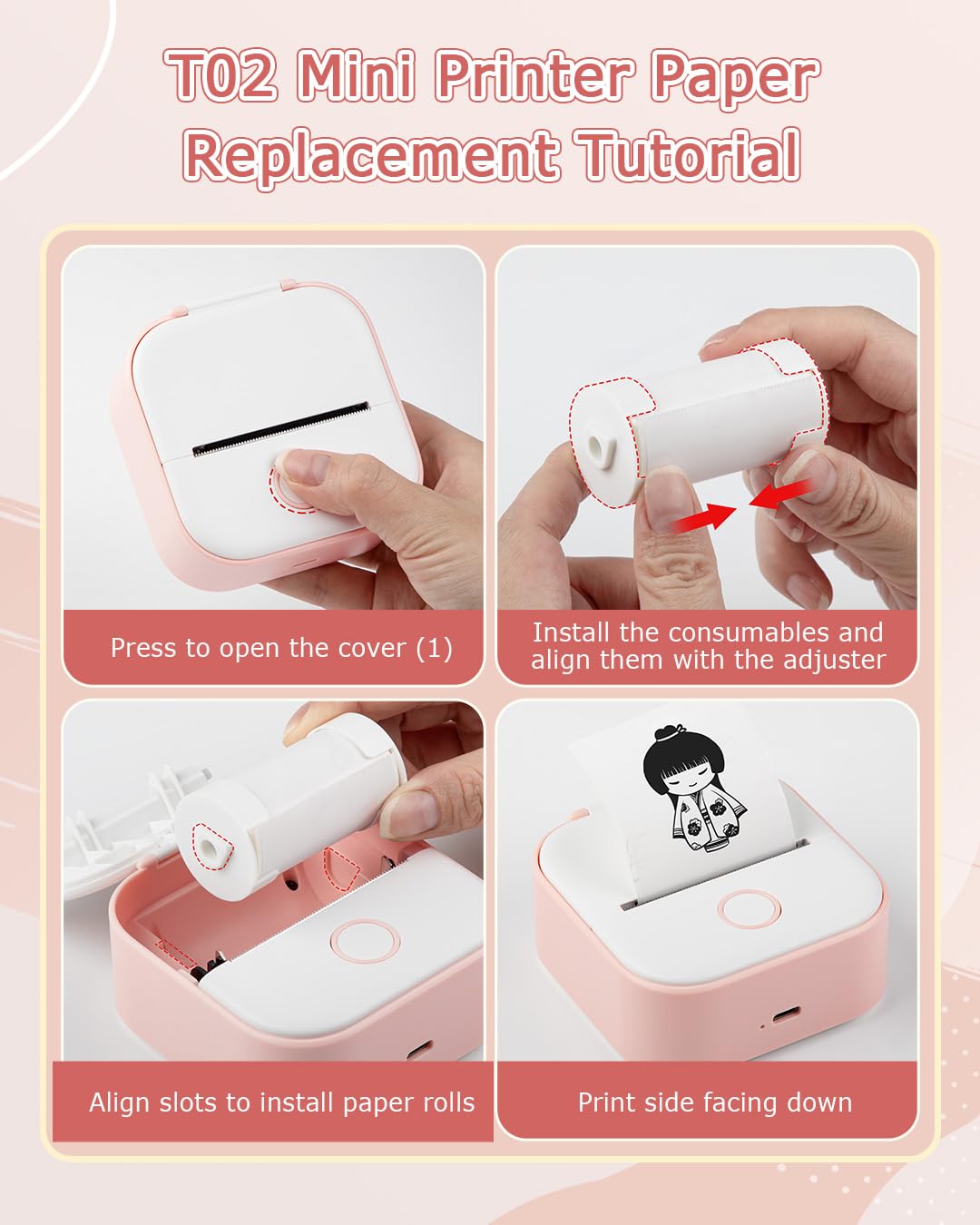 - The Good Choice - T02 mini thermal printer can be used for DIY creations, object decoration, image stickers, photo albums, study lists, work plans and more. Can be widely used in homes, schools, workplaces, kindergartens, etc.