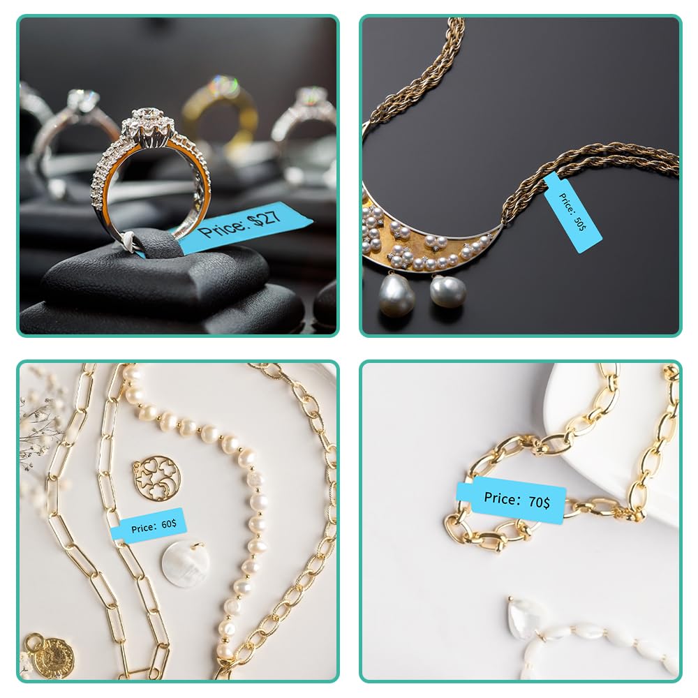 Phomemo tags M110 M120 M200 M220 M221 tags, Build Jewelry Tags, Water Cutter Cable Tags, Award Tags, Terminal Tags, 25mm*38mm + 40mm, 100 Tags/Roll, Blue