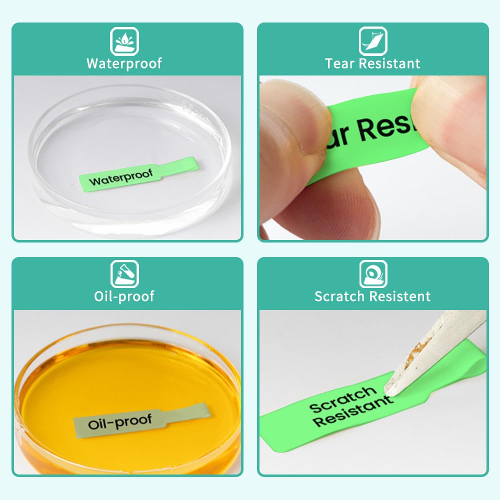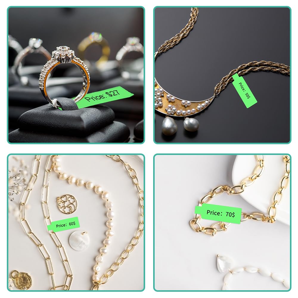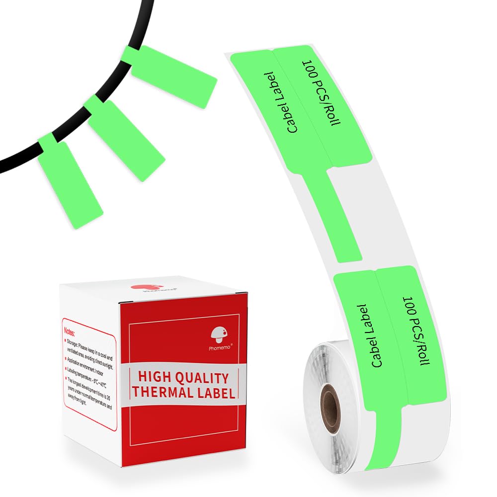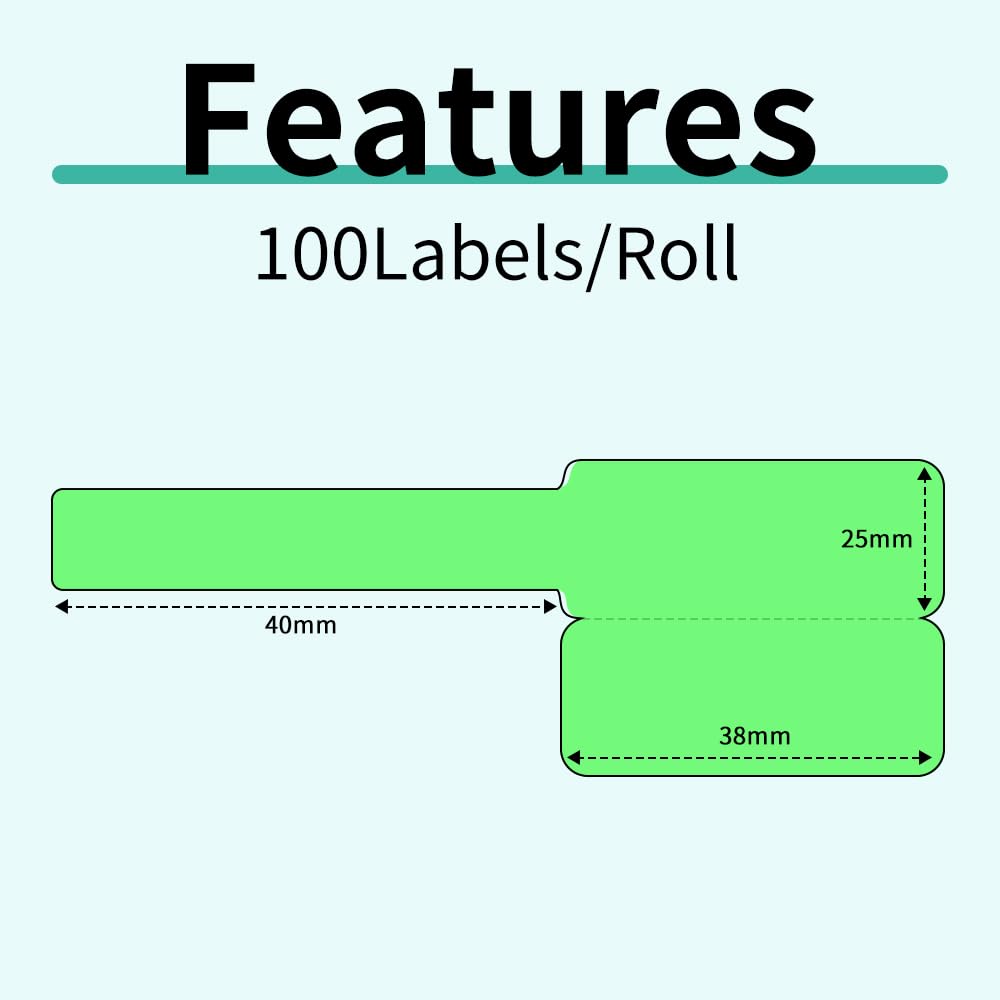 Phomemo tags M110 M120 M200 M220 M221 tags, Build Jewelry Tags, Water Cutter Cable Tags, Award Tags, Terminal Tags, 25mm*38mm + 40mm, 100 Tags/Roll, Green