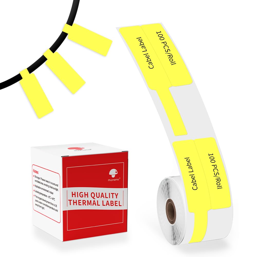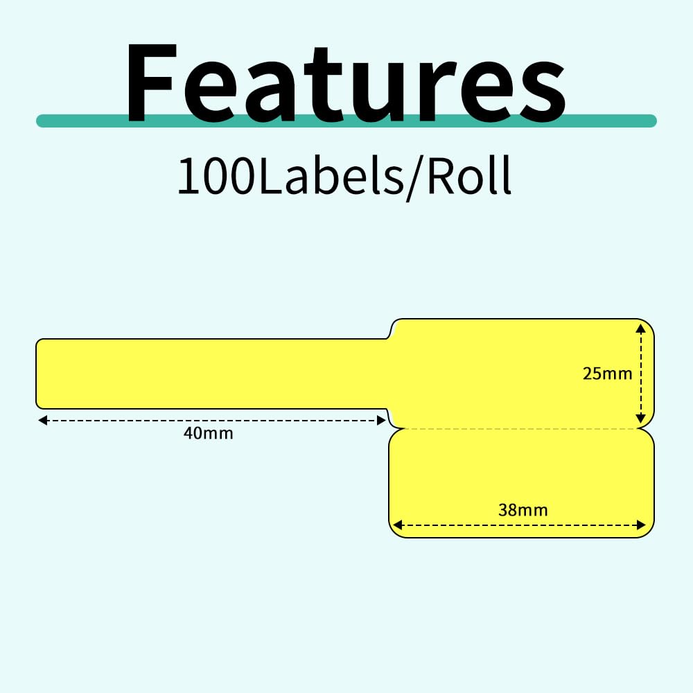 Phomemo tags M110 M120 M200 M220 M221 tags, Build Jewelry Tags, Water Cutter Cable Tags, Award Tags, Terminal Tags, 25mm*38mm + 40mm, 100 Tags/Roll, Yellow