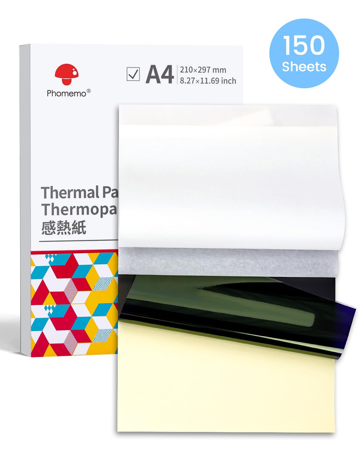 Phomemo Tattoo Transferpapier - A4 Gr??e Thermo-Schablonenpapier f¨¹r Tattoo Transfer - DIY Tattoo Pauspapier Kompatibel mit M08F Tattoo Drucker, 150 Blatt