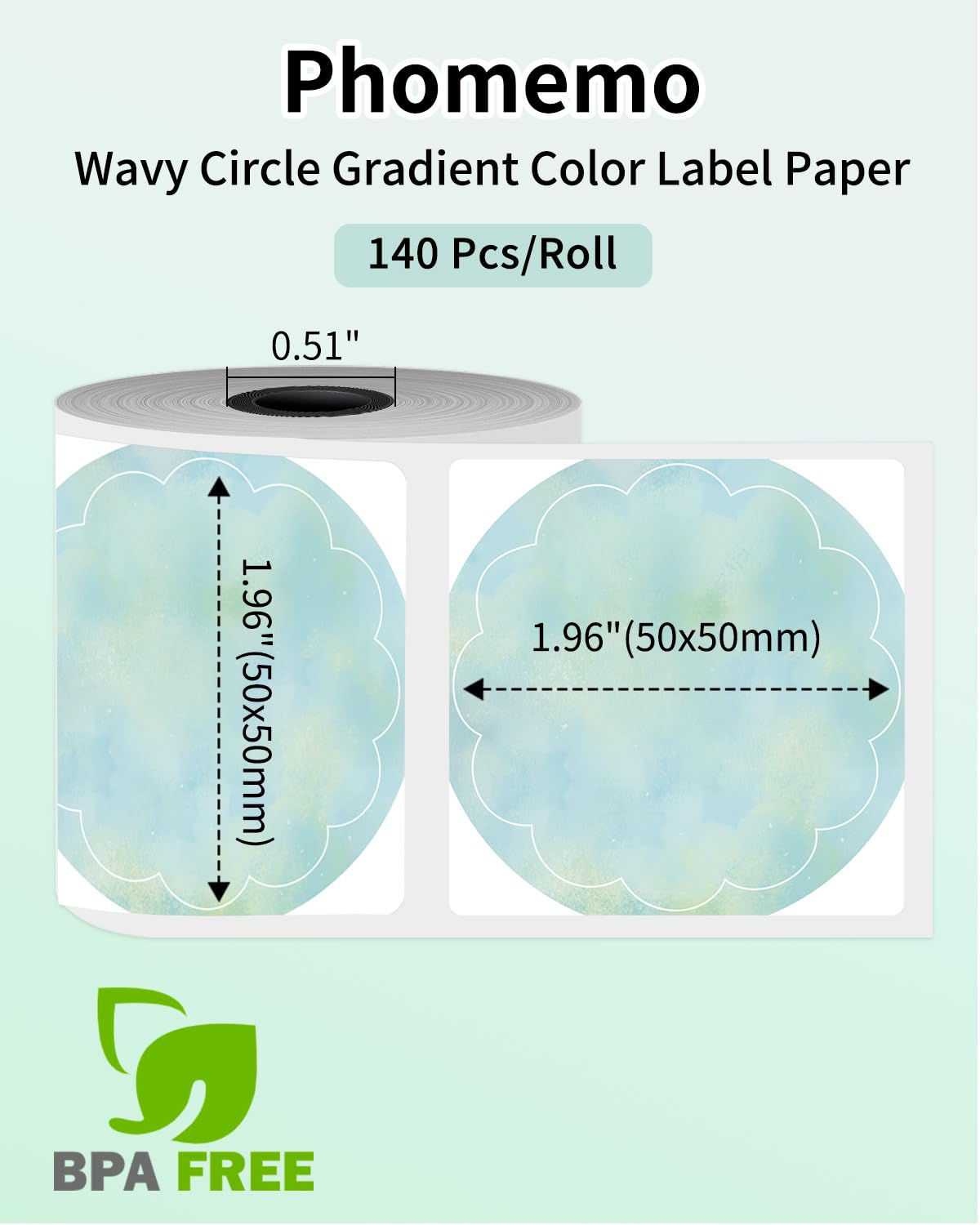 - Phomemo Etiquetas térmicas redondas Verde Cielo Estrellado color adecuadas para impresoras térmicas de etiquetas M110/M120/M200/M220/M221, 50x50 mm (1,96'' x 1,96''), 140 etiquetas/rollo.