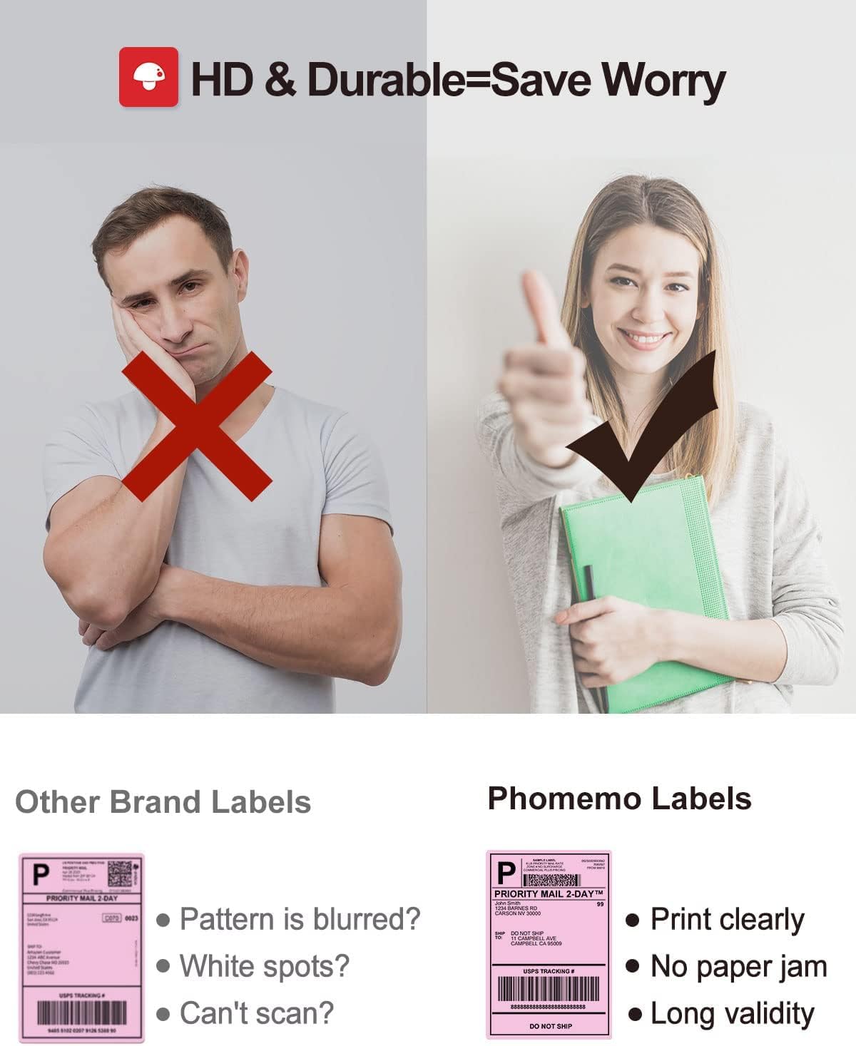 Phomemo Thermal Direct Étiquettes d'expédition – 10,2 x 15,2 cm, 500 pièces, adhésif permanent, étiquettes thermiques de qualité commerciale – Rose