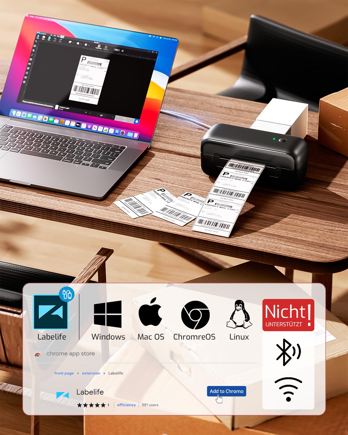 - [Correcte Installatie]:Phomemo PM246S verzending thermische label printer machine moet downloaden van de''Labelife''APP van Google Play,op de website:labelife.net/pm246s download de driver software,Driver ondersteuning van Windows,Mac,Chrome OS,Linux-systeem,en vervolgens USB aangesloten op de printer! (Tips:Bluetooth en Wifi verbindingen worden niet ondersteund)